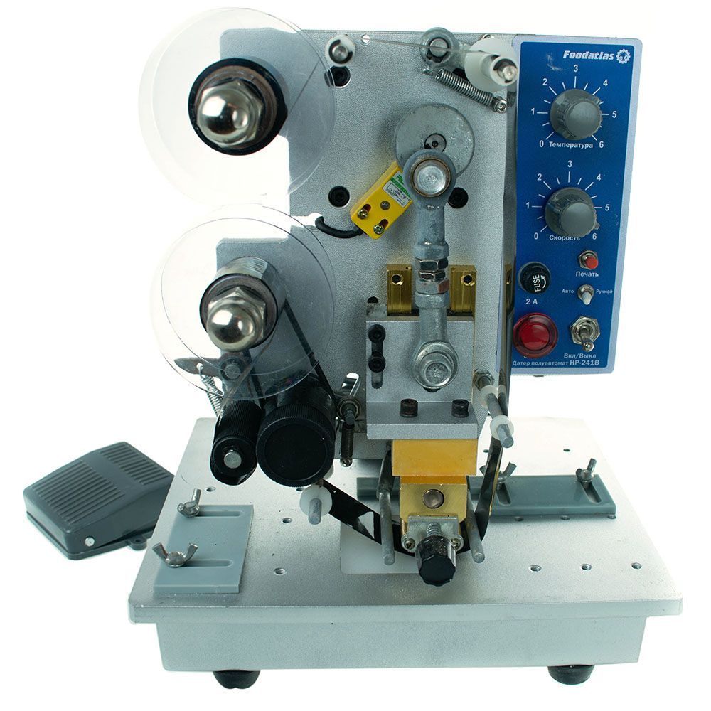 Датер полуавтоматический Pro HP-241B производства Foodatlas (Китай) используется для термопереноса чернильной печати на упаковочные материалы (полиэтилен, полипропилен, алюминиевую фольгу, ламинированную пленку, бумагу, выделанную кожу и т.д.). Применяется на предприятиях общественного питания и на производстве.