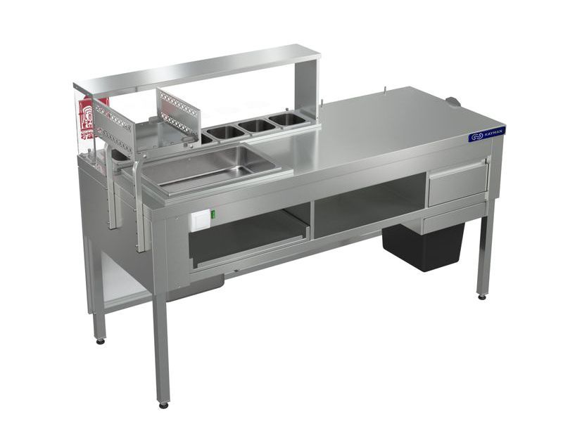 - на рабочую столешницу станции, с правой стороны, устанавливается установка ШАВЕРМА ЭЛЕКТРИЧЕСКАЯ KAYMAN или ШАВЕРМА ГАЗОВАЯ KAYMAN;
