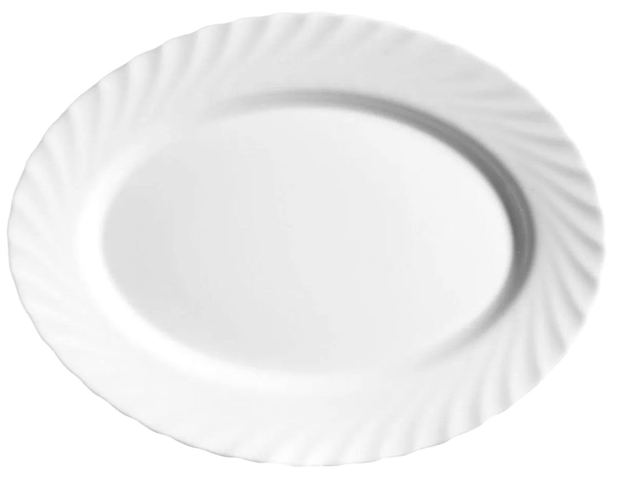 Блюдо выполнено из опалового стекла. Имеет волнистый край. Подходит для использования в посудомоечных машинах.