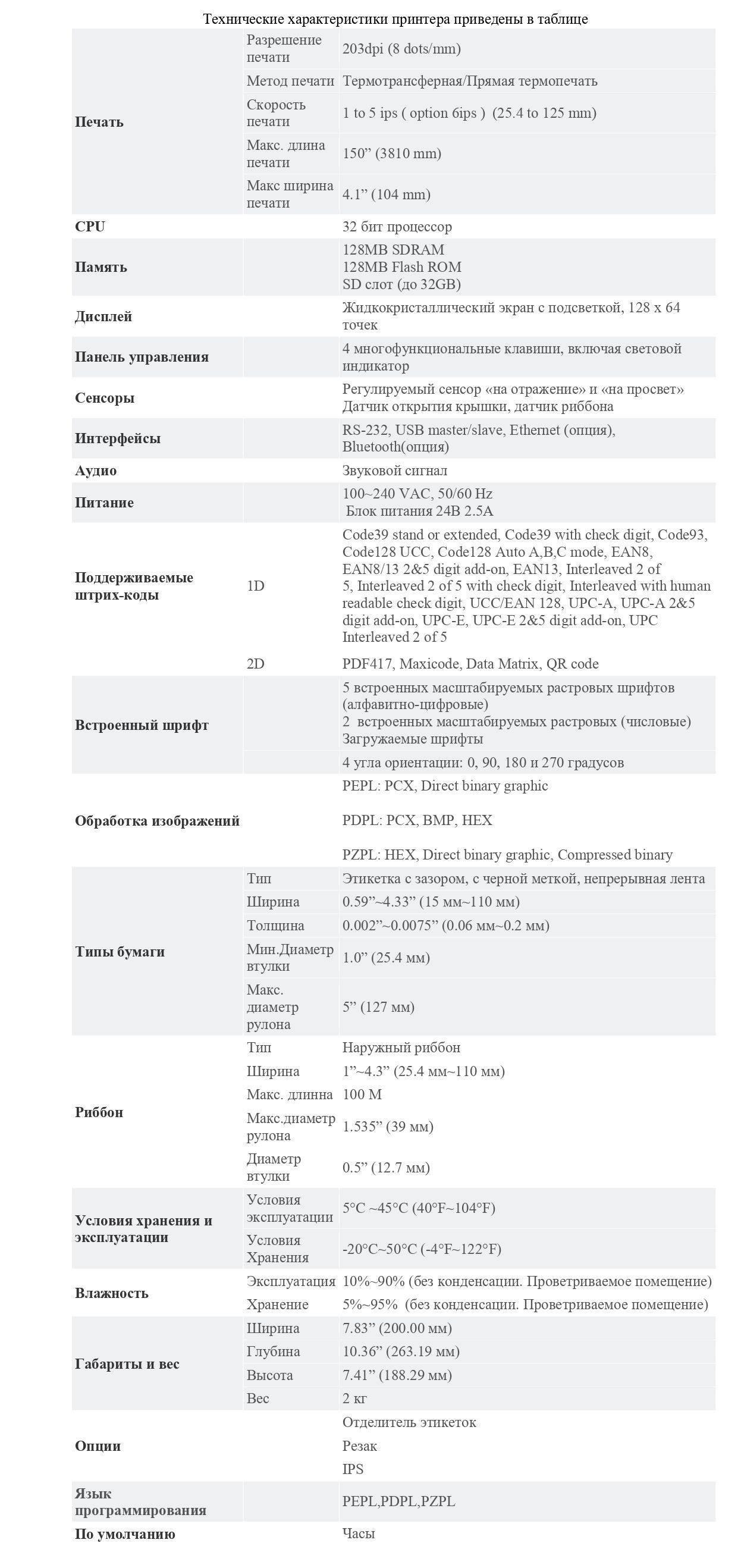 - метод печати: термотрансферная / прямая термопечать