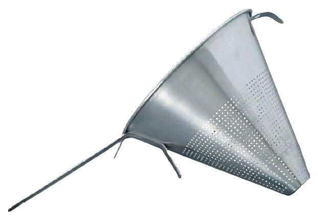 Дуршлаг конический 38686 d=160мм 1л нерж. производства MGsteel применяется в сферах общественного питания для отделения жидкости после приготовления круп, макарон и других продуктов, а также для очищения ягод, грибов, мелких фруктов и овощей. Устройство имеет конусообразную форму, оснащено удобной ручкой и крючками для легкости использования.
