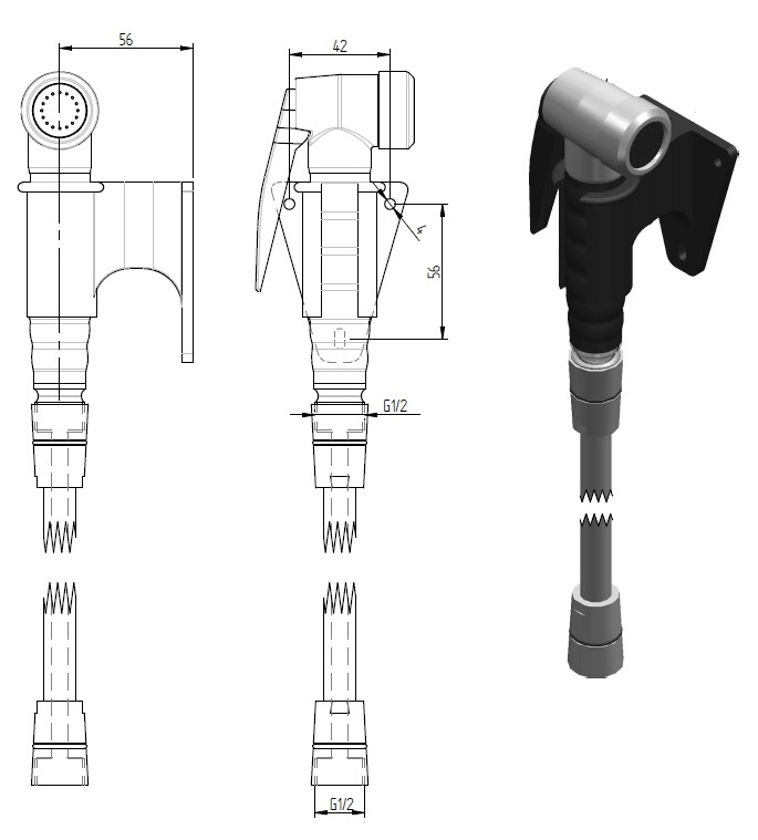 - Шланг с двумя гайками G 1/2’’ (дюйма);
