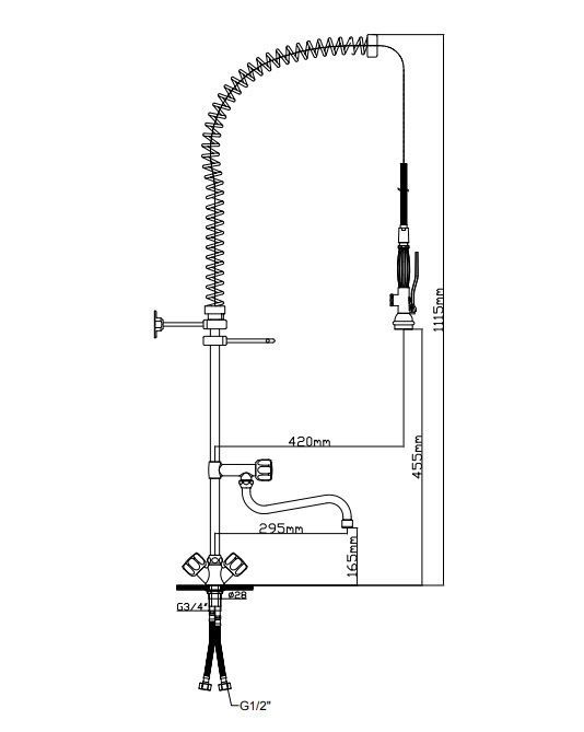 Душирующее устройство 9077023S производства KOCATEQ (Южная Корея) – представляет собой душ для установки на моечную ванну или на стол-мойку для разбора и предварительного ополаскивания посуды перед ее загрузкой в посудомоечную машину..