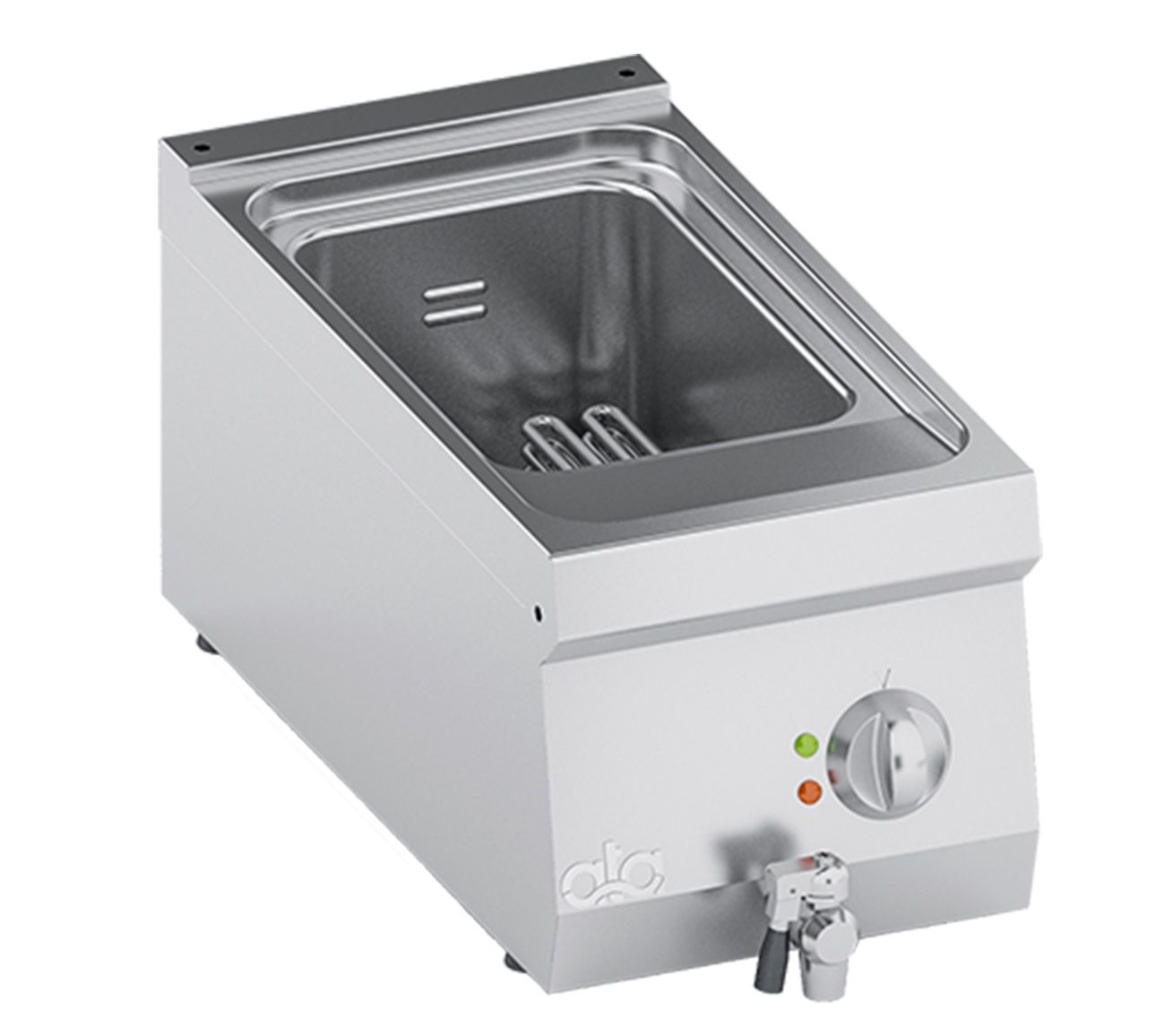 Фритюрница оснащена одной ванной. Все элементы корпуса изготовлены из пищевой нержавеющей стали, ручки - из атермического термореактивного пластика.