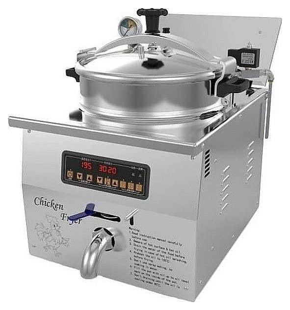 Фритюрница MDXZ‑16B производства Redgastro (Китай) - используется для жарки цыплёнка в панировке, рыбы, овощей и других продуктов с сохранением их сочности, аромата и вкусовых качеств благодаря технологии приготовления под давлением.