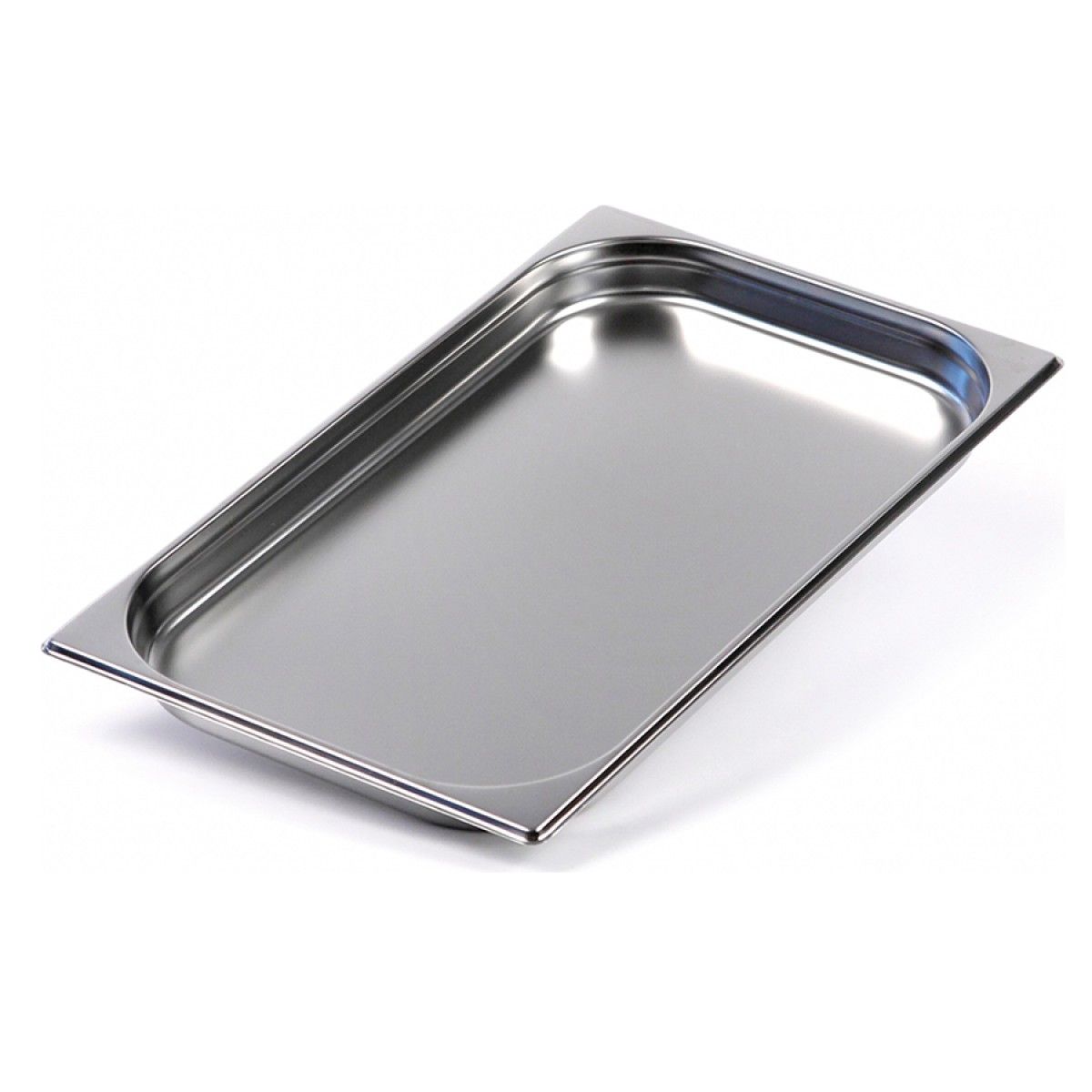 Гастроемкость глубиной 40мм выполнена из нержавеющей стали и имеет гладкую поверхность. Модель не имеет ручек и крышки.