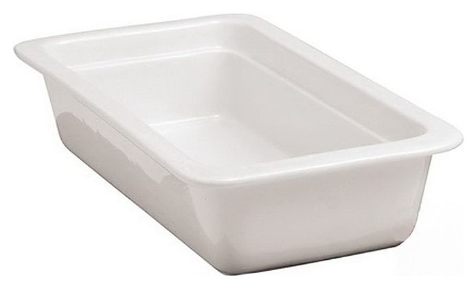 Гастроемкость выполнена из упрочненного фарфора. Имеет повышенную стойкость к механическому воздействию и сколам.