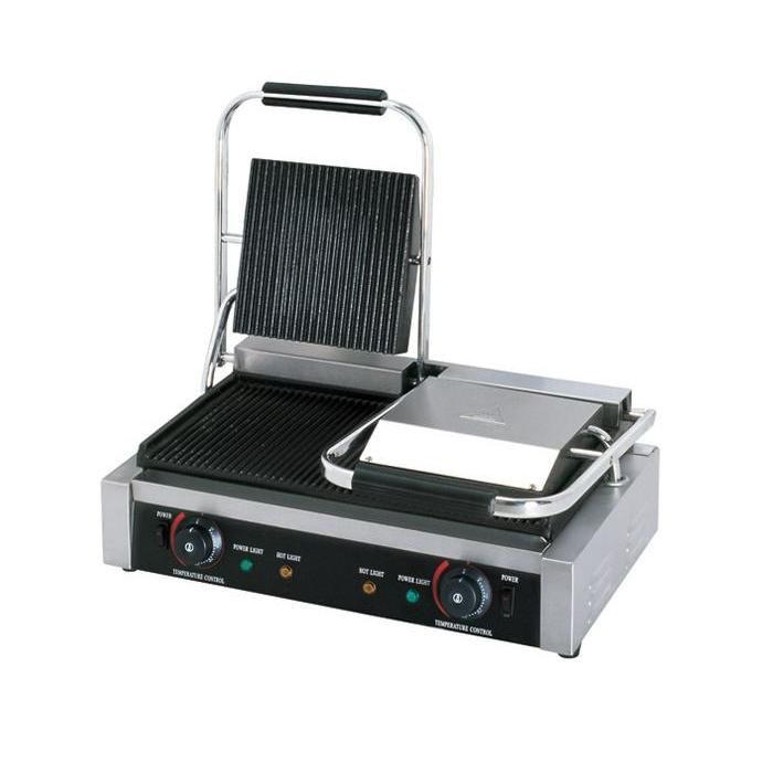 Гриль имеет две пары рифлёных греющих поверхности, контактирующих с продуктом в процессе приготовления, что помогает достичь более равномерной и быстрой прожарки.