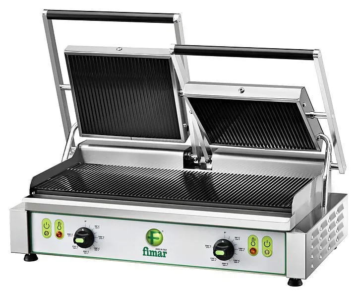 Прижимной гриль PE50R рассчитан на приготовление различных блюд и продуктов, требующих обжарки: рыбы, овощей, стейков, горячих сэндвичей и других. Рабочие поверхности разогреваются до 300 градусов, что обеспечивает быстрый и равномерный прогрев продукта.