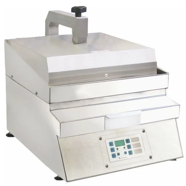 В данной модели предусмотрено электронное управление, автоматическое опускание при запуске и поднятие при окончании готовки верхних нагревательных поверхностей.