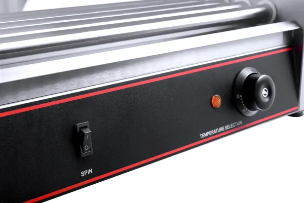 Благодаря непрерывному вращению роликов, сосиска прожаривается равномерно со всех сторон.