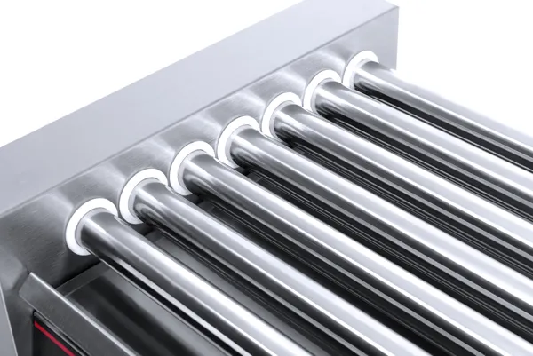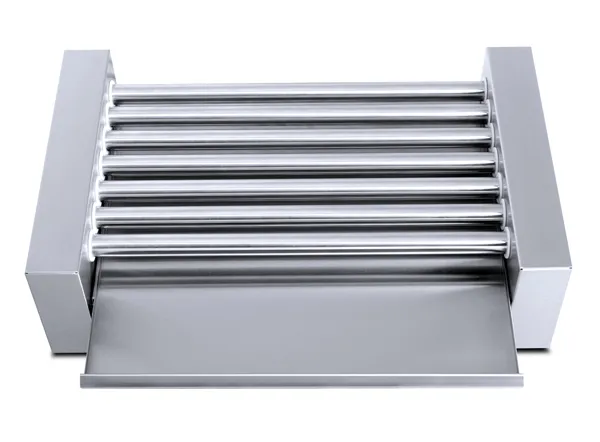 Материал корпуса – нержавеющая сталь. Гриль имеет 7 роликов, выполненных из нержавеющей стал. Благодаря непрерывному вращению роликов, сосиска прожаривается равномерно со всех сторон.