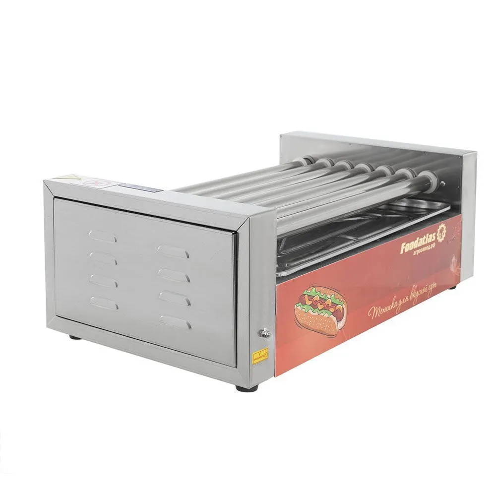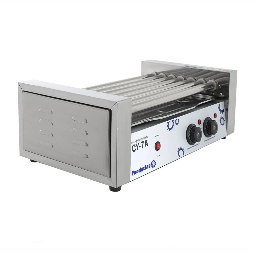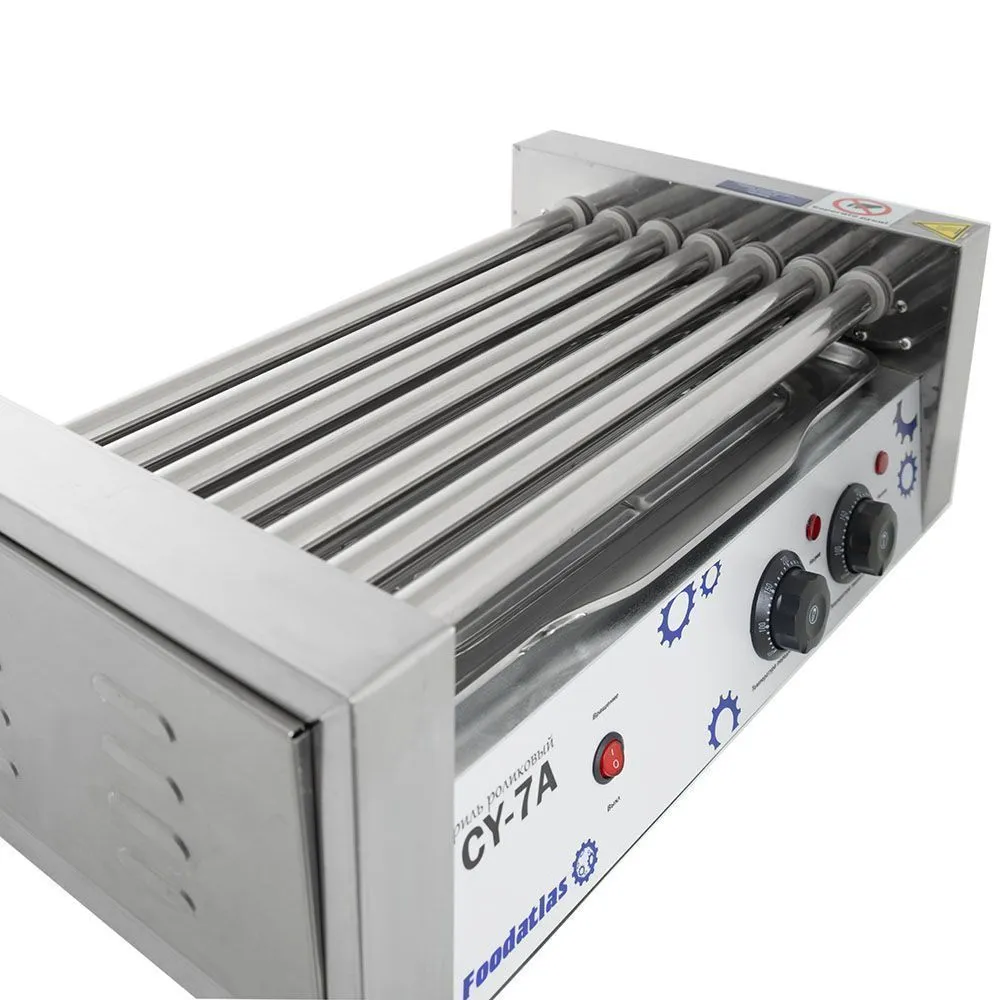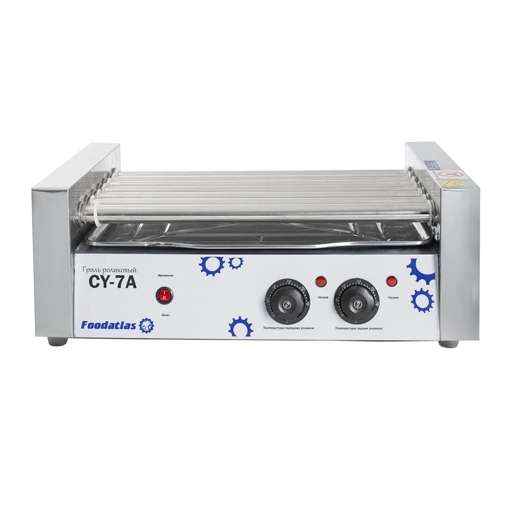 Гриль роликовый CY-7A производства Foodatlas (Китай) используется для обжаривания сосисок для приготовления хот-догов. Применяется на предприятиях общественного питания, в кафе, ресторанах и в точках фастфуда.