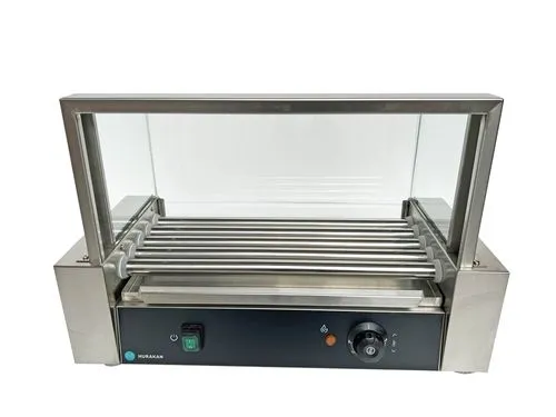 Гриль роликовый HKN-GW5MC с экраном производства Hurakan (Китай) применяется для жарки сосисок, рыбных палочек, стейков, сарделек, колбасок и т.п.. Предназначен для различных предприятий общественного питания, кафе, ресторанов и точек уличной торговли.