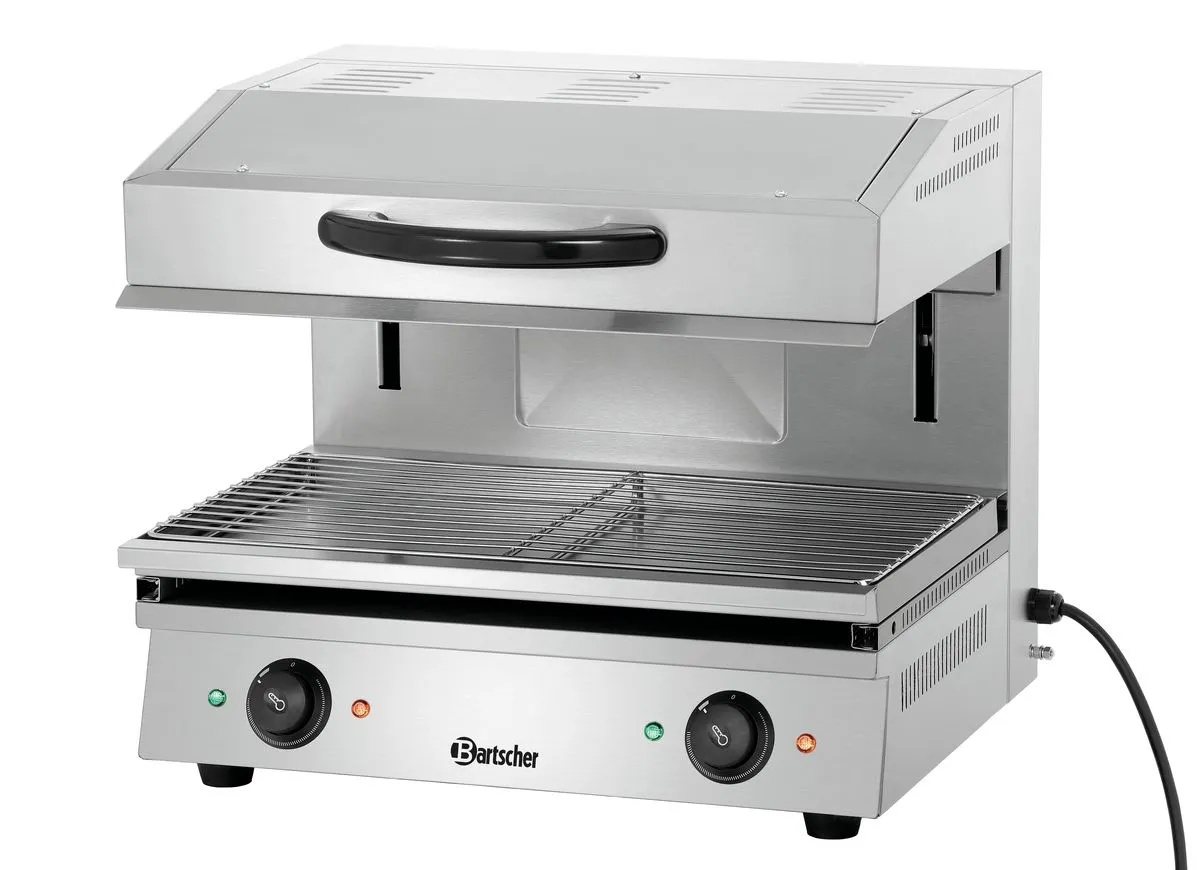 Гриль саламандра 600-2Z 151512 производства Bartscher (Китай) - профессиональный двухуровневый гриль с практичной функцией подъема, подходит для приготовления любых блюд из рыбы, мяса, сэндвичей, тостов и овощей. Поддерживает температуру готовых продуктов.