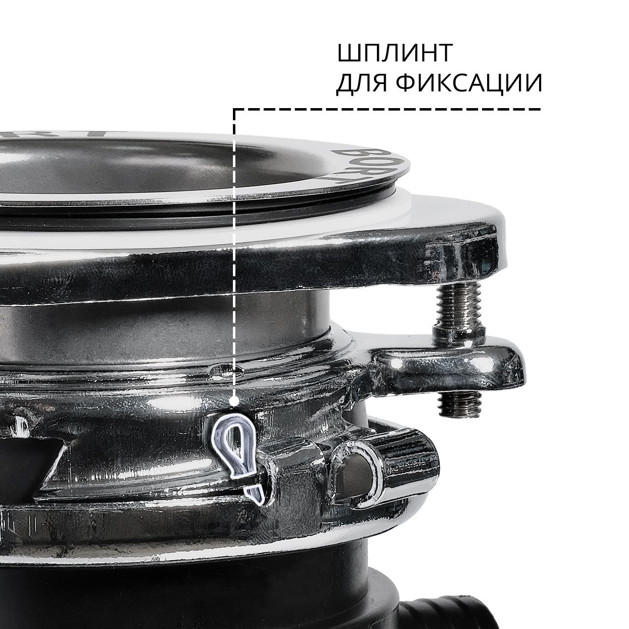 Камера измельчения. Корпус камеры измельчения выполнен из прочного композитного материала. Материал измельчающего элемента изготовлен из нержавеющей стали и имеет три ступени дробления, способен дробить даже кости. Попадая в измельчительную камеру, пищевые отходы разбиваются на более мелкие фрагменты, перетираются в водянистую кашу, которая легко и безопасно смывается в канализацию.
