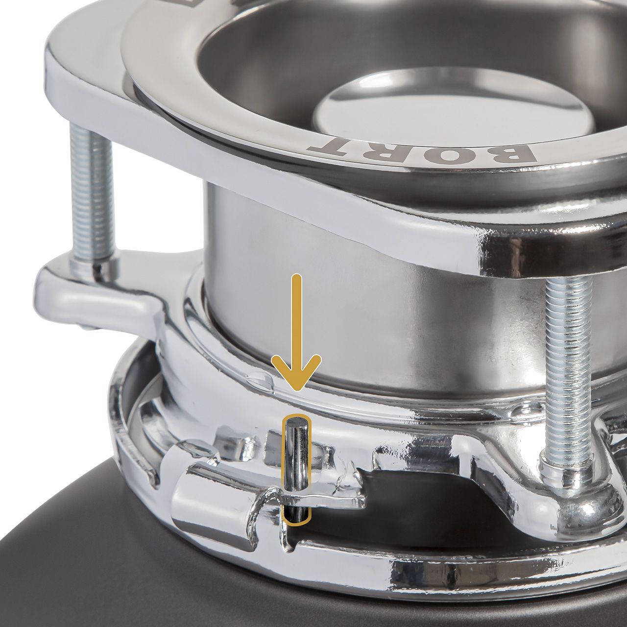 Камера измельчения. Корпус камеры измельчения выполнен из прочного композитного материала. Материал измельчающего элемента изготовлен из нержавеющей стали и имеет три ступени дробления, способен дробить даже кости. Попадая в измельчительную камеру, пищевые отходы разбиваются на более мелкие фрагменты, перетираются в водянистую кашу, которая легко и безопасно смывается в канализацию.