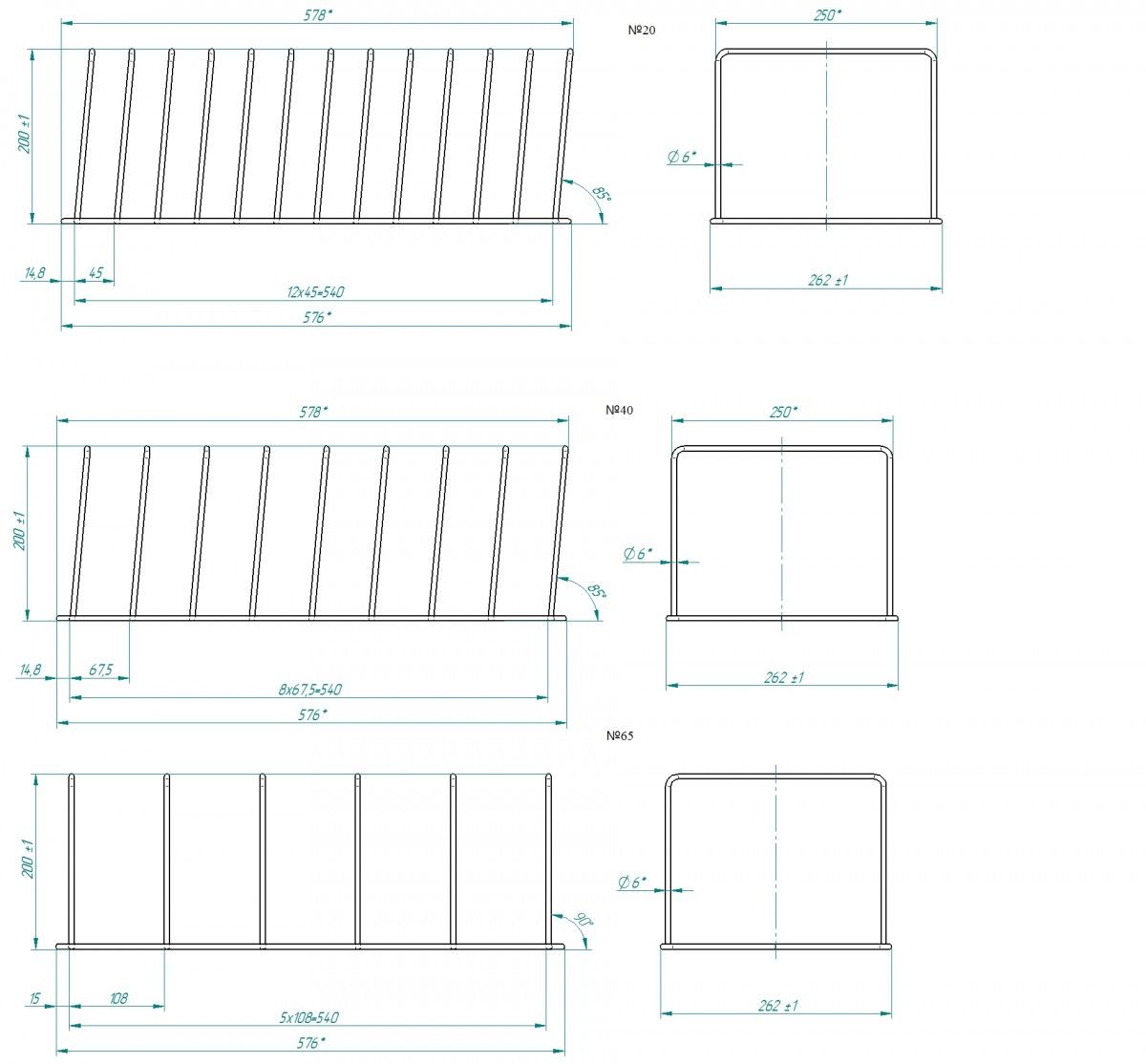 Держатель № 65 предназначен, для установки противней и гастроемкостей высотой не более 6,5 см.