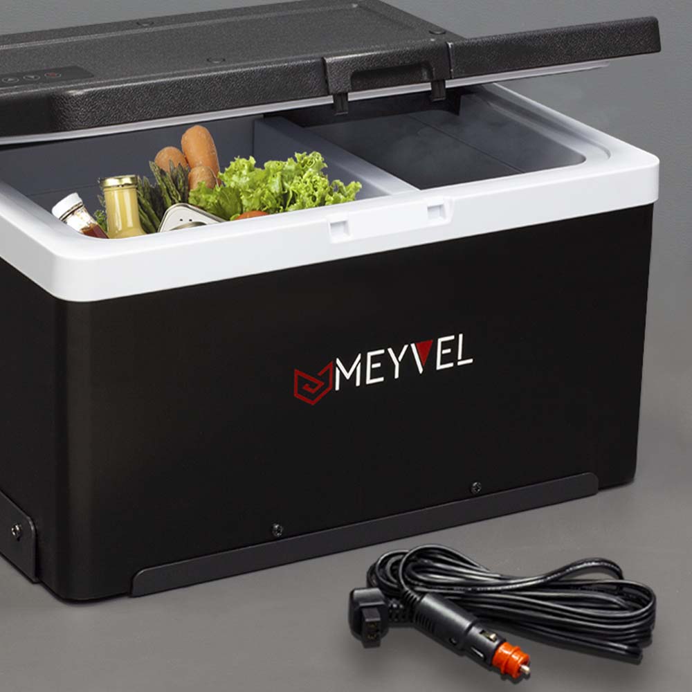 Автомобильный холодильник встраиваемый AF-AB22 производства Meyvel (Италия) - компрессорная модель объёмом 22 л с двумя независимыми камерами. Идеален для автомобилистов, дальнобойщиков и любителей путешествий: сохраняет продукты и напитки свежими в дороге, на водном транспорте и в грузовиках (в т. ч. в KAMAZ 5490 - устанавливается в нишу под спальным местом). Работает от прикуривателя (12/24 В), сети 220 В (адаптер приобретается отдельно) и солнечных батарей.