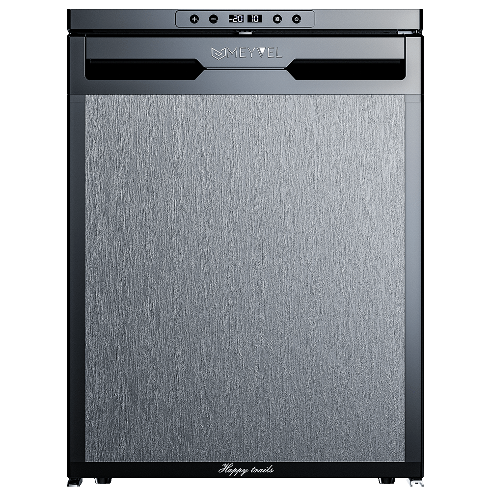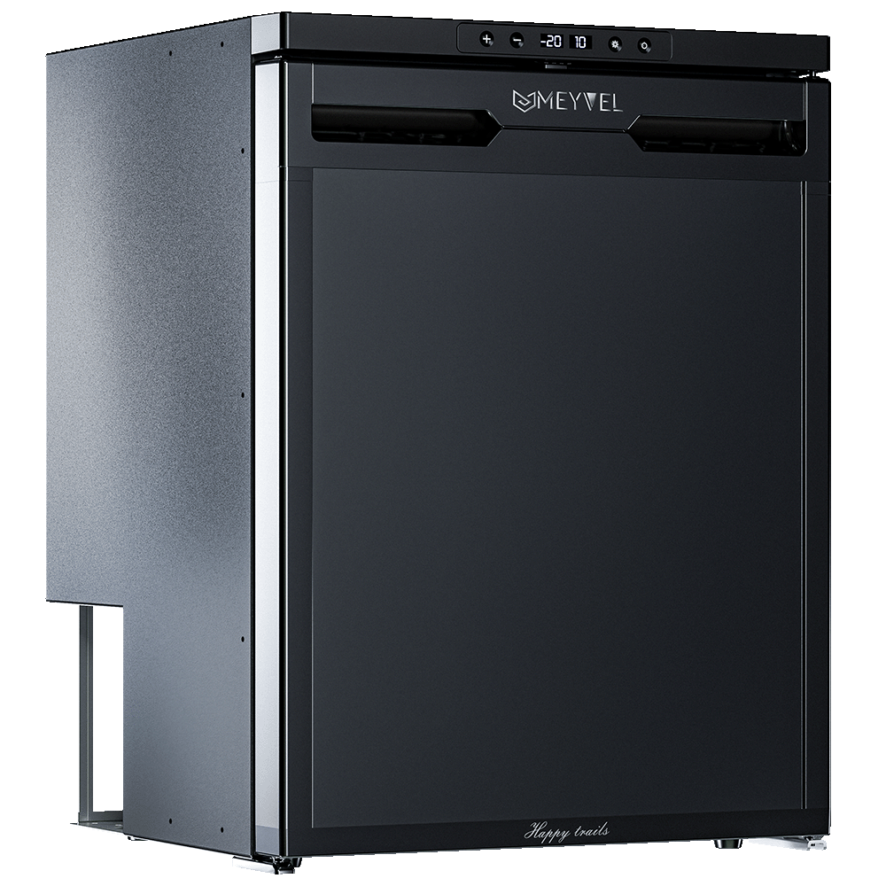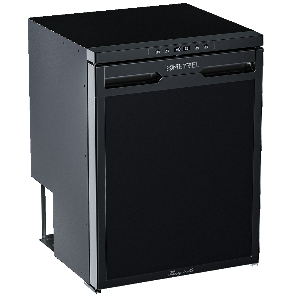 Автомобильный холодильник встраиваемый AF-DB65X производства Meyvel (Италия) - компрессорная модель объёмом 65 л, предназначенная для установки в микроавтобусы, грузовики, яхты, автодома и кемперы. Работает от бортовой сети 12/24 В; питание от 220 В доступно как дополнительная опция. Поддерживает температурный диапазон от +20 °C до -20 °C, имеет две раздельные камеры - для охлаждения и глубокой заморозки.