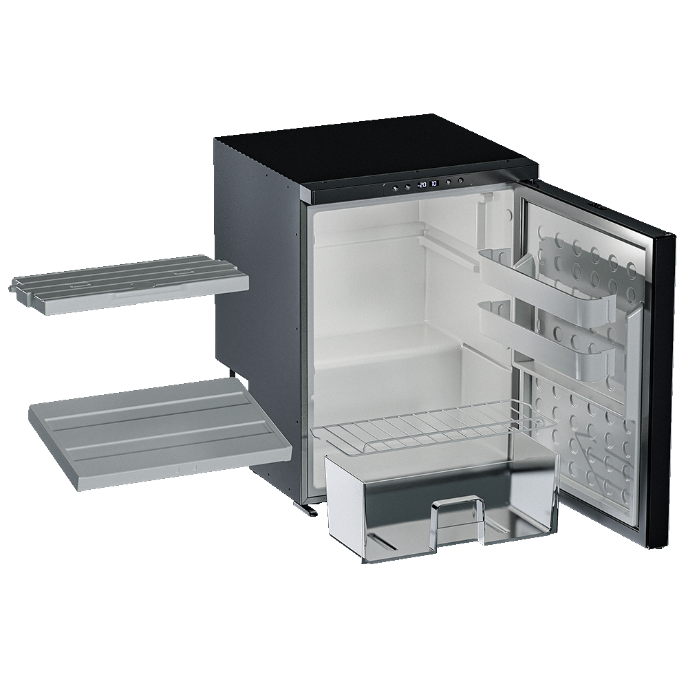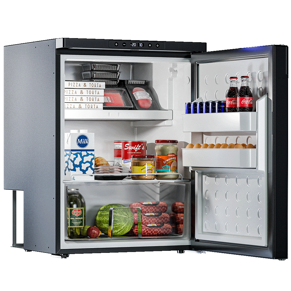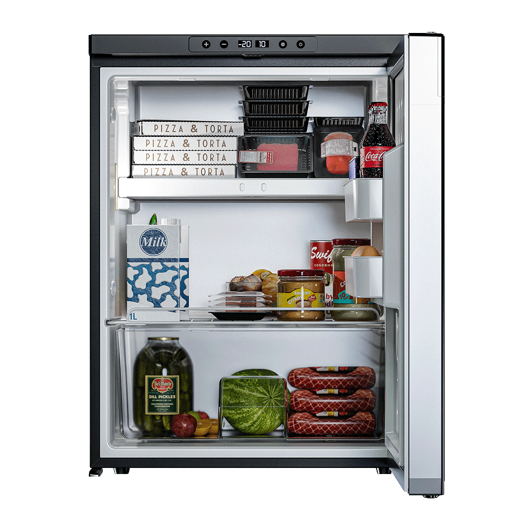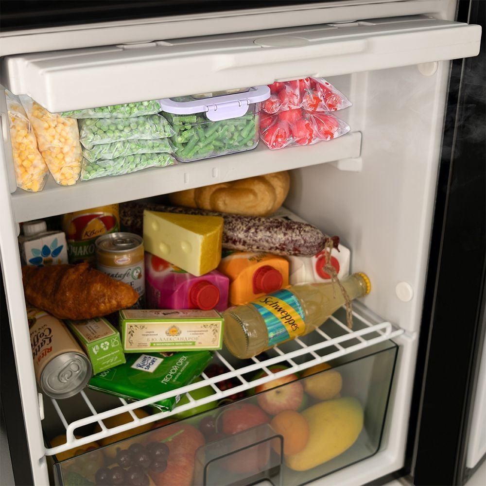 Автомобильный холодильник встраиваемый AF-DB65X производства Meyvel (Италия) - компрессорная модель объёмом 65 л, предназначенная для установки в микроавтобусы, грузовики, яхты, автодома и кемперы. Работает от бортовой сети 12/24 В; питание от 220 В доступно как дополнительная опция. Поддерживает температурный диапазон от +20 °C до -20 °C, имеет две раздельные камеры - для охлаждения и глубокой заморозки.