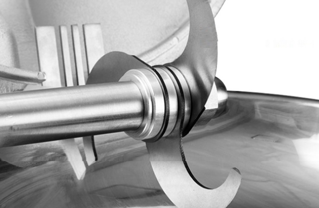 В отличие от большинства стандартных куттеров, TQHL 14 имеет вращающуюся чашу, которая непрерывно перемещает загруженные продукты. Это позволяет избежать возникновения «мертвых зон» и добиться равномерного измельчения даже объемных продуктов.