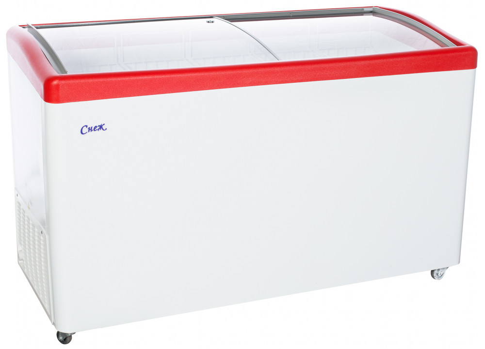 Ларь морозильный МЛГ-500 красный производства СНЕЖ (Россия) - надежный и долговечный морозильный ларь с раздвижной стеклянной крышкой сферической формы.