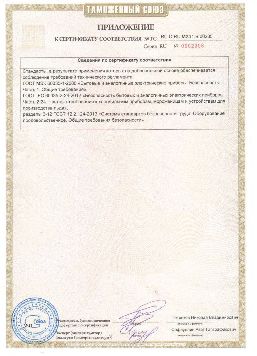 -система автовыключения при аварийных ситуациях (прекращение водополачи, утечка фреона, перегрузка мотора, переполнение бункера);