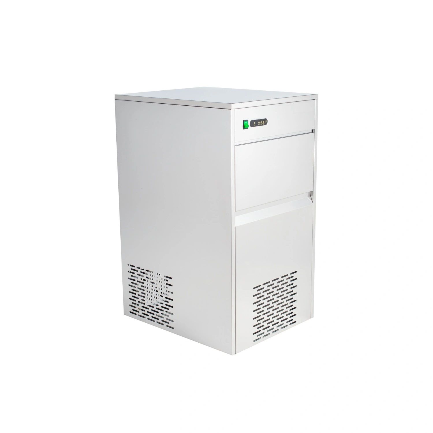 Прибор оборудован воздушным охлаждением, льдогенератор следует установить в проветриваемом месте. Корпус выполнен из нержавеющей стали.