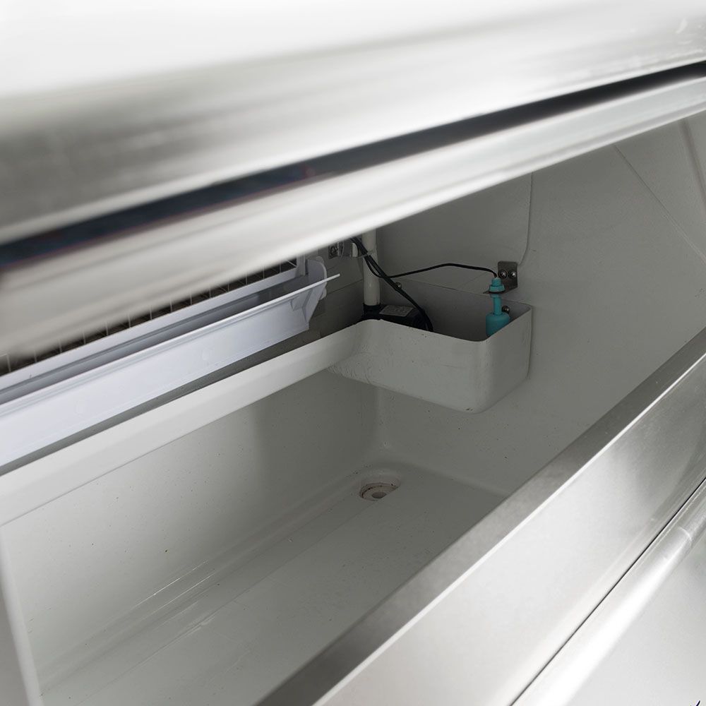 Корпус выполнен из нержавеющей стали и покрыт теплоизоляционной пеной толщиной 30-40 мм. Лед хранится в специальной камере - готовые плитки могут находиться там до 12 часов.