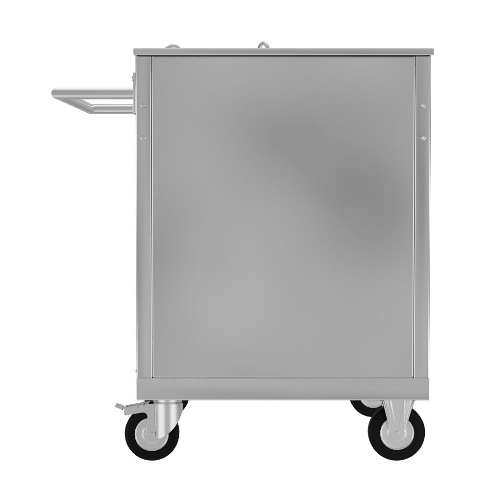 - Имеет 4 поворотных колеса (2 со стопором).