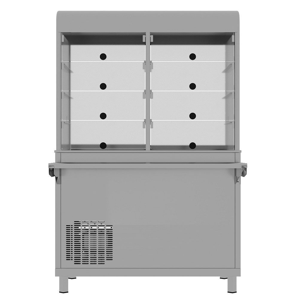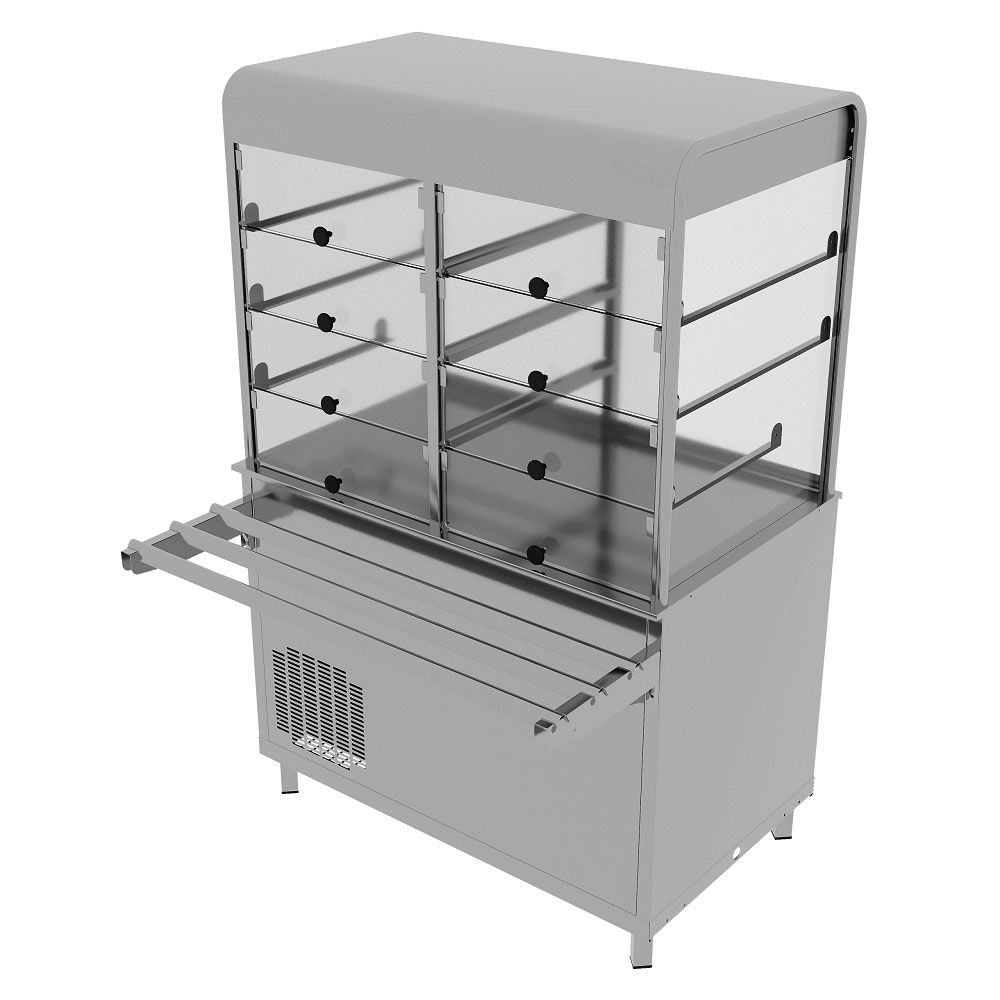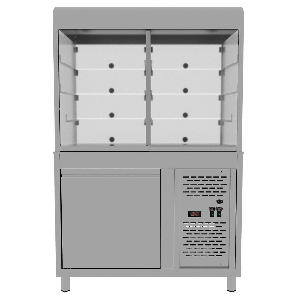 - Закрытая витрина с 3 уровнями + основание для выкладки (охлаждаемая столешница);