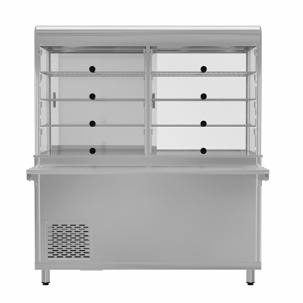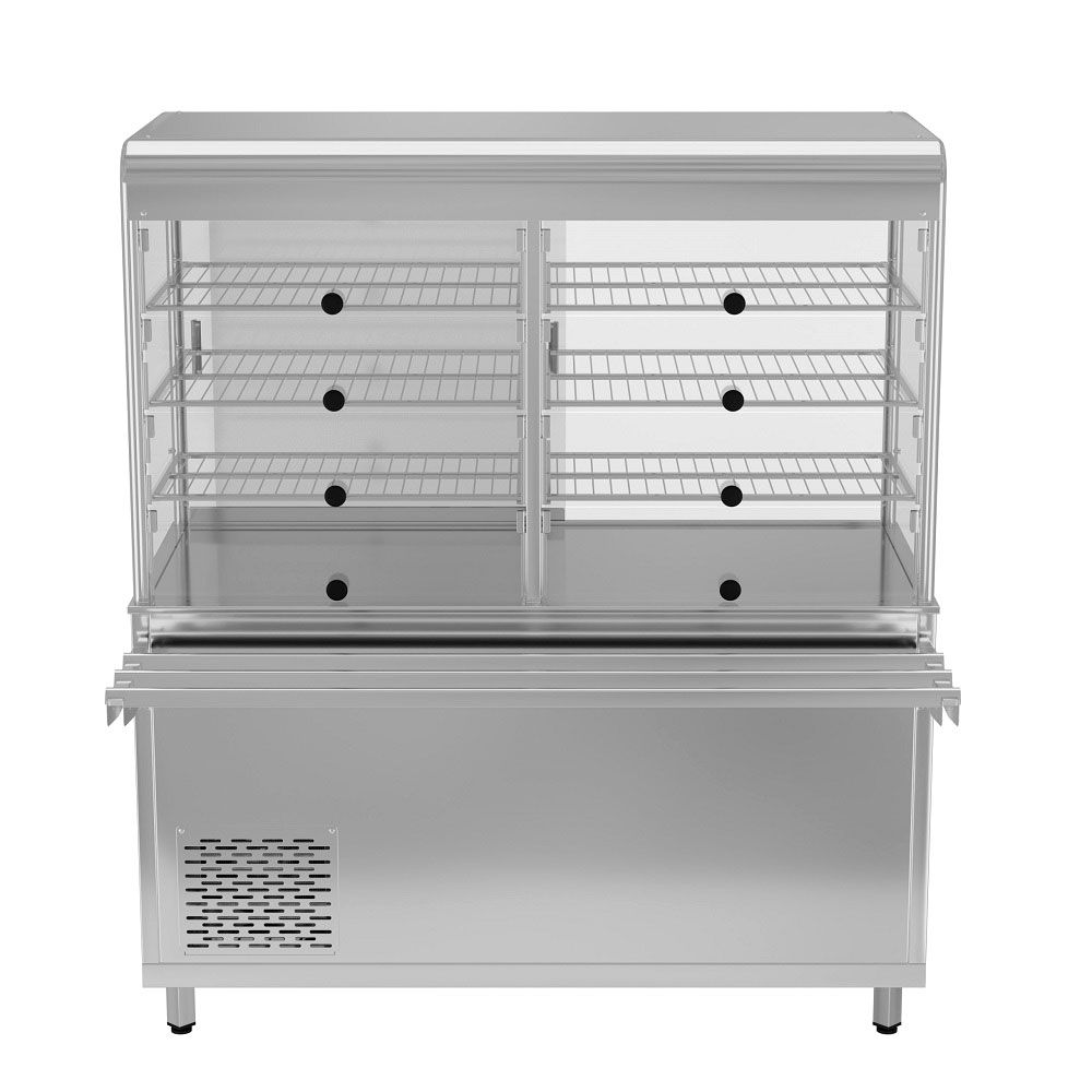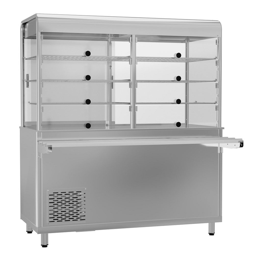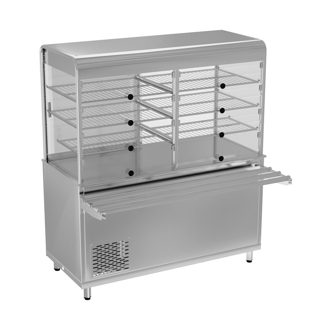 - Закрытая витрина с 3 уровнями + основание для выкладки (охлаждаемая столешница);