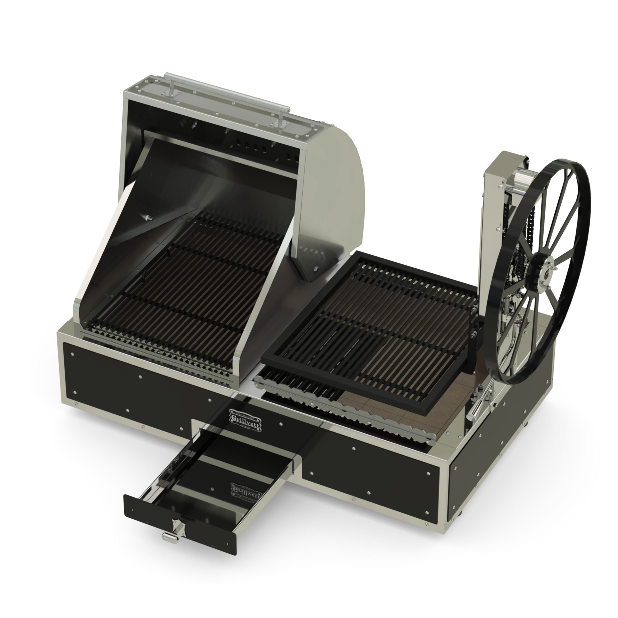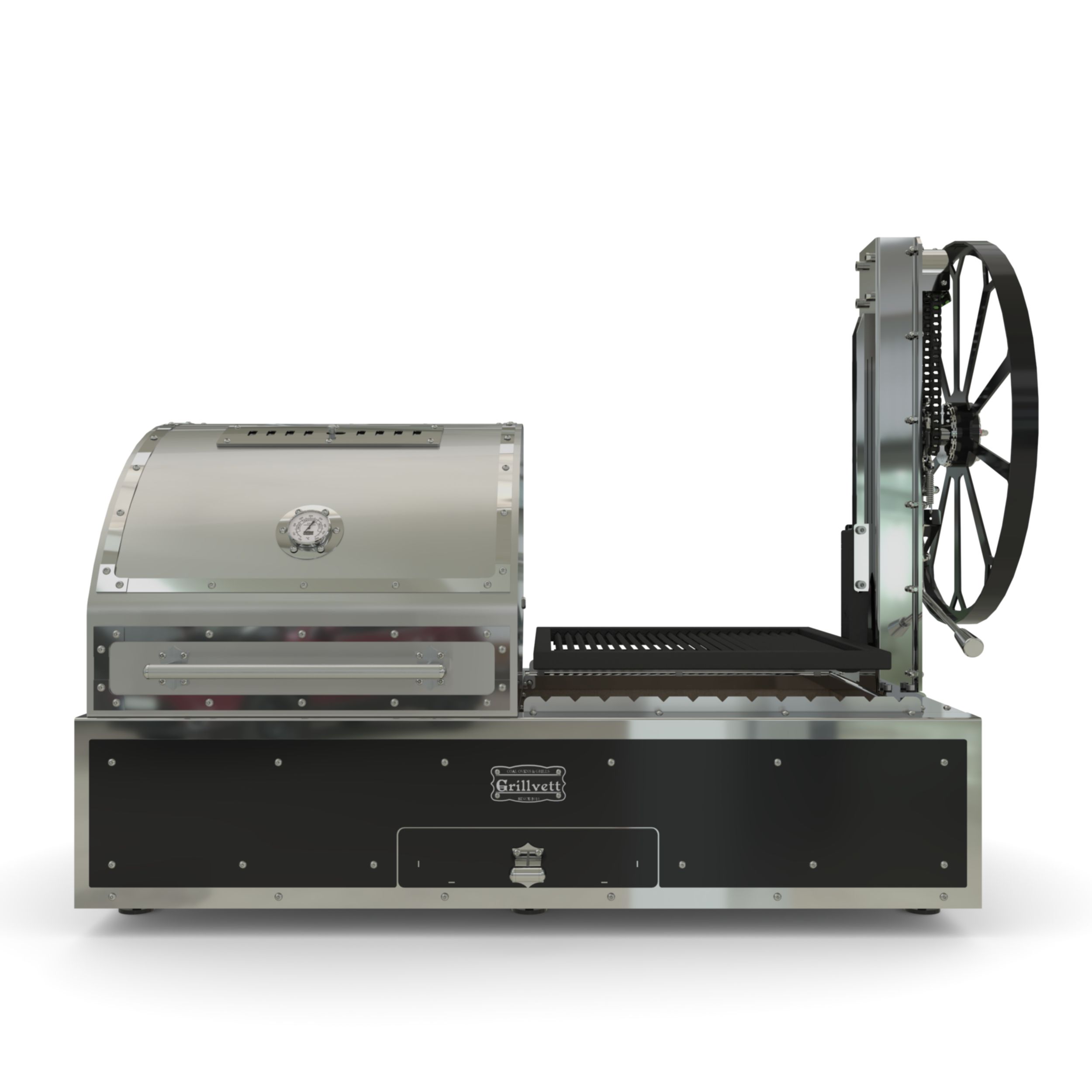 - Регулируемая штурвалом решётка-гриль - точный контроль расстояния над углями;