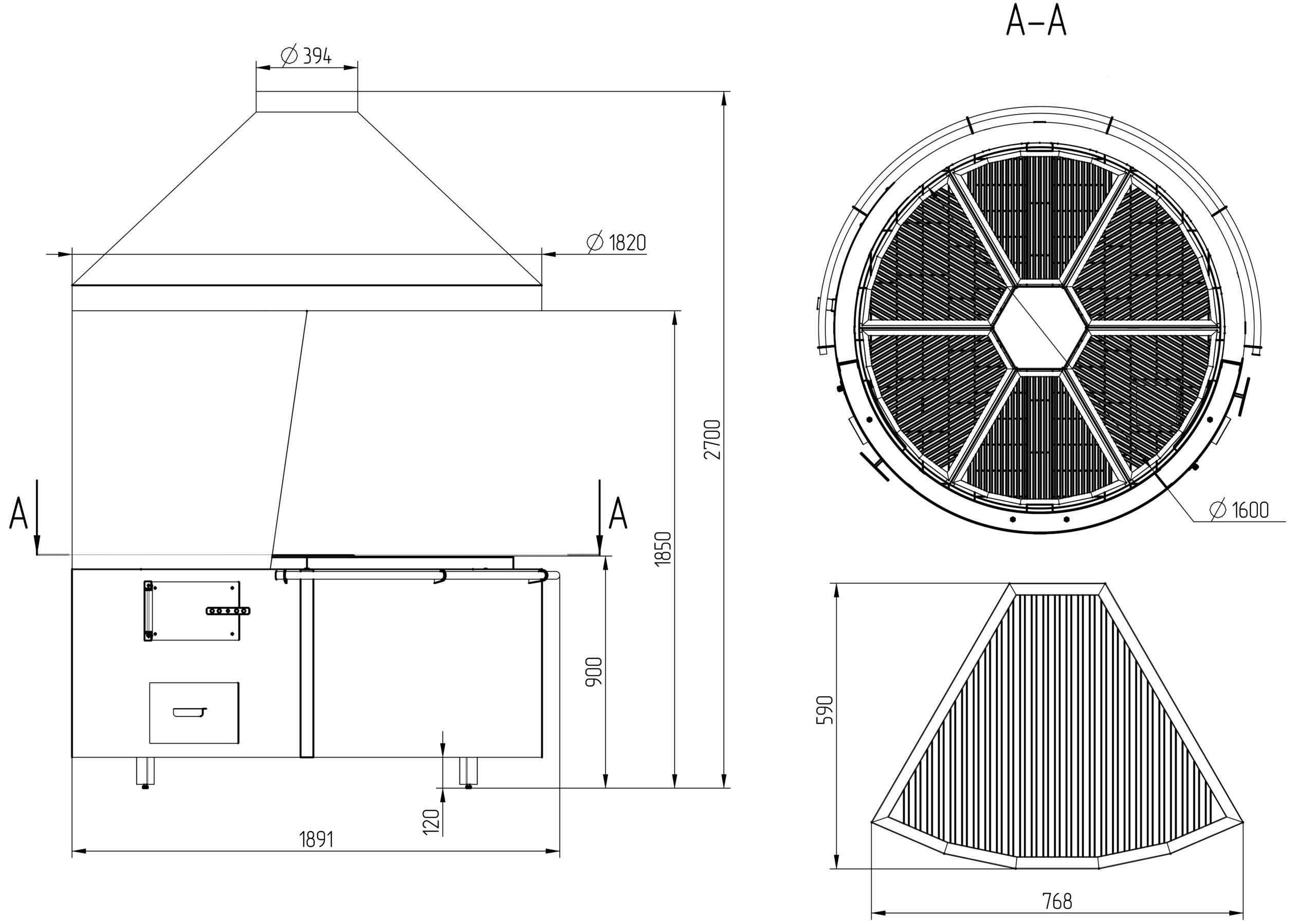 - подключение к вентиляции: диаметр патрубка 396 мм.