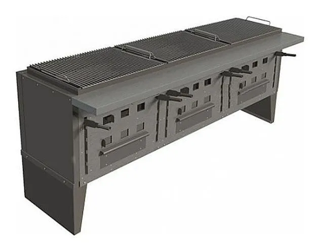 Узел подъема колосника имеет съемные стальные стенки толщиной 0,5 см. Регулировка высоты колосника осуществляется при помощи рычажного механизма. Для установки доступны 5 позиций. Мангал имеет регулируемый поддув для контроля температуры углей.