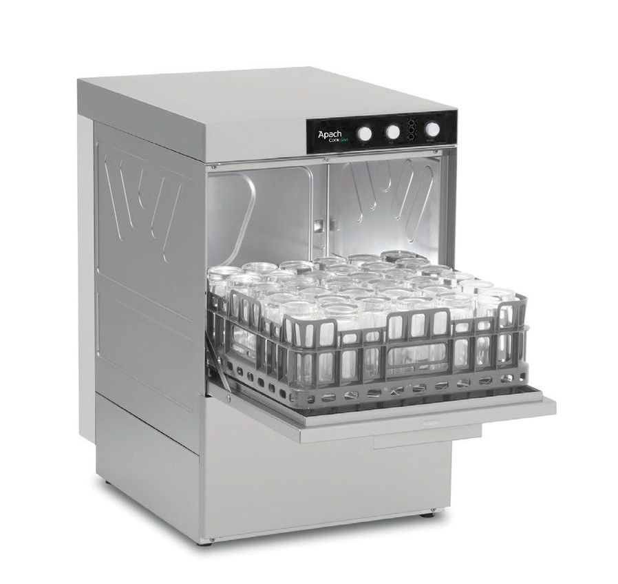 Стаканомоечная машина AFTRD400 DDP производства APACH Cook Line (Италия) – используется для мойки стаканов, чашек, бокалов, тарелок и столовых приборов. Применяется в кафе, ресторанах, точках уличной торговли и различных предприятиях общественного питания.