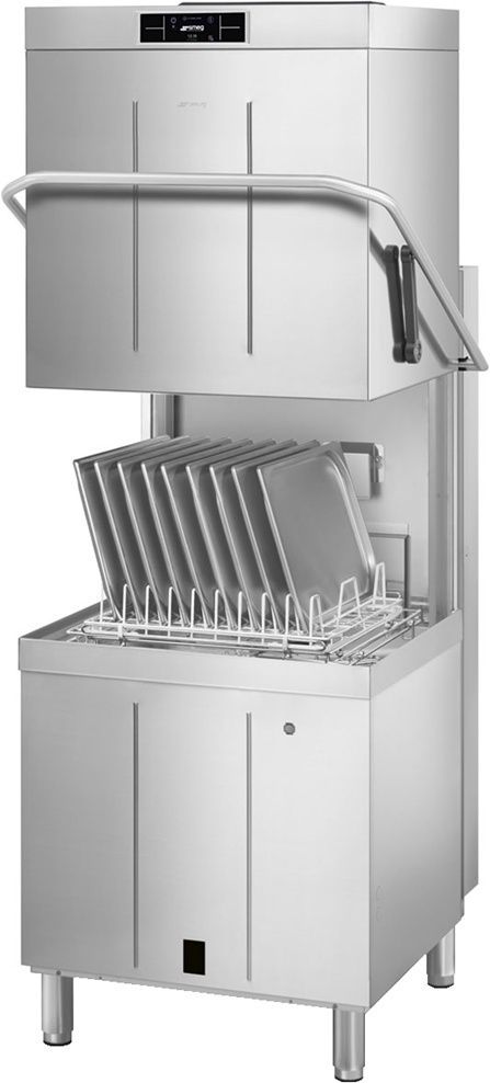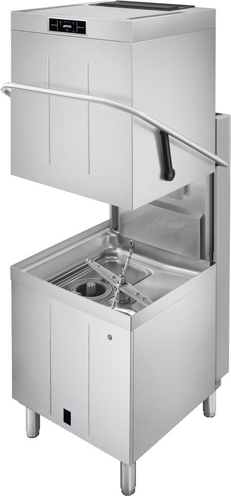 Посудомоечная машина купольная SPH625SH производства Smeg (Италия) - профессиональная купольная посудомоечная машина серии Pura для мойки тарелок, чашек, стаканов, столовых приборов, гастроёмкостей GN 1/1 и противней 600×400 мм. Модель оснащена TFT-дисплеем, встроенным водоумягчителем, системой AdaptWash, системой HTR и рекуператором пара SHR, который исключает выход пара при открытии дверцы. Предназначена для интенсивной эксплуатации на предприятиях общественного питания всех типов.