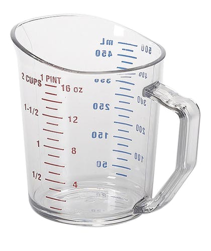 Мерный стакан 50MCCW прозрачный (0,5л) серии Camwear производства Cambro (США) для измерения пищевых сыпучих и жидких продуктов в литрах, пинтах, квартах и унциях.