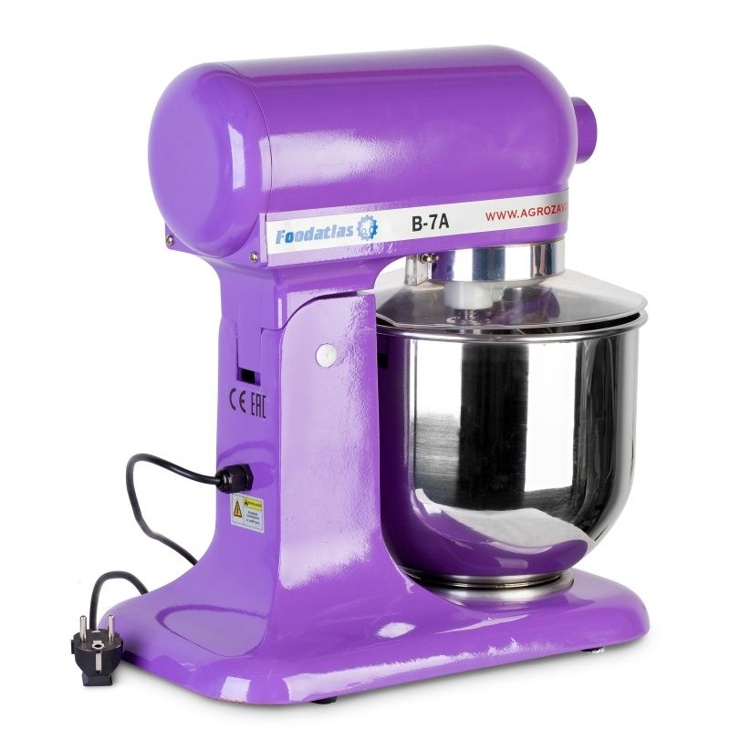 Миксер планетарный B-7A фиолетовый производства Foodatlas (Китай) используется для формирования белкового и жидкого теста, соусов и кремов. Применяется на предприятиях общественного питания, в кафе, ресторанах и на производстве.