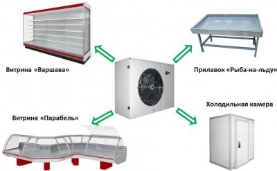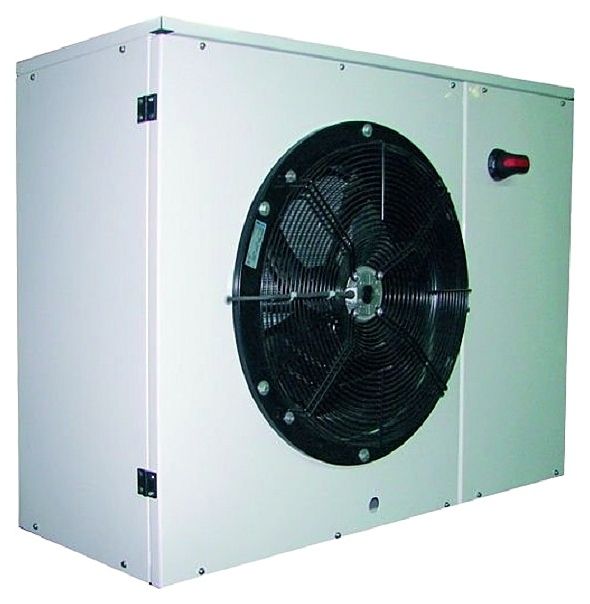 На стальном основании установлены холодильные компрессора, высокопроизводительный конденсатор с регулятором скорости и жидкостном ресивером.