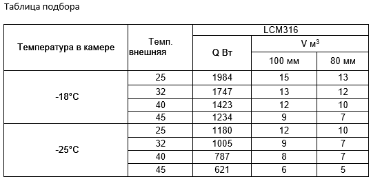 *Объем охлаждения камеры указан при условии теплоизоляции 100 мм и внешней температуры 25ºС. Более подробные объемы см. в таблице ↓.
