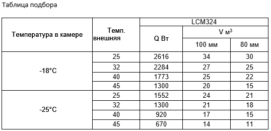 *Объем охлаждения камеры указан при условии теплоизоляции 100 мм и внешней температуры 25ºС. Более подробные объемы см. в таблице ↓.