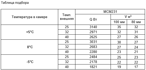 *Объем охлаждения камеры указан при условии теплоизоляции 100 мм и внешней температуры 25ºС. Более подробные объемы см. в таблице ↓.
