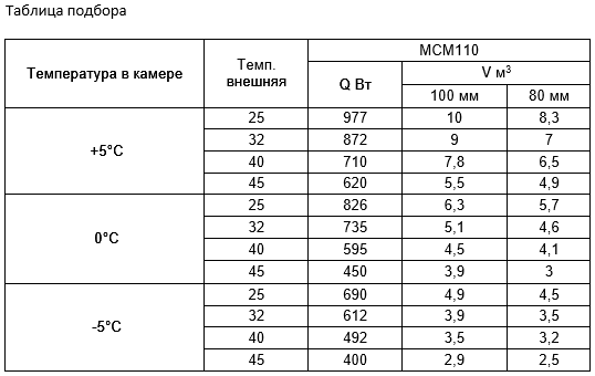 *Объем охлаждения камеры указан при условии теплоизоляции 100 мм и внешней температуры 25ºС. Более подробные объемы см. в таблице ↓.