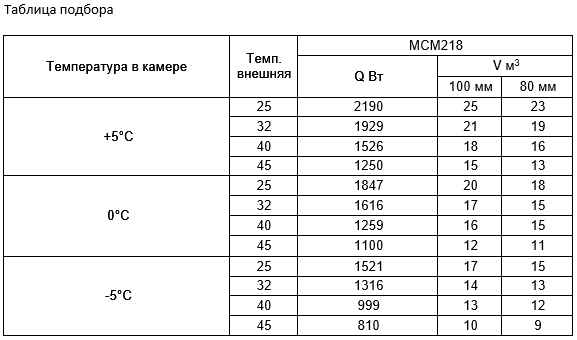 *Объем охлаждения камеры указан при условии теплоизоляции 100 мм и внешней температуры 25ºС. Более подробные объемы см. в таблице ↓.