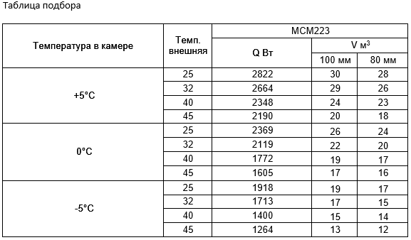 *Объем охлаждения камеры указан при условии теплоизоляции 100 мм и внешней температуры 25ºС. Более подробные объемы см. в таблице ↓.