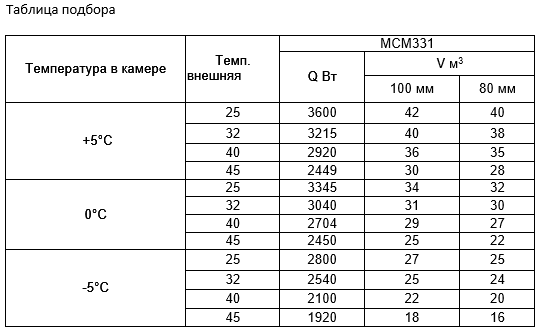 *Объем охлаждения камеры указан при условии теплоизоляции 100 мм и внешней температуры 25ºС. Более подробные объемы см. в таблице ↓.