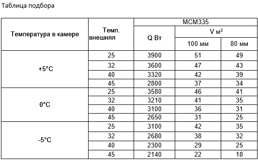 *Объем охлаждения камеры указан при условии теплоизоляции 100 мм и внешней температуры 25ºС. Более подробные объемы см. в таблице ↓.