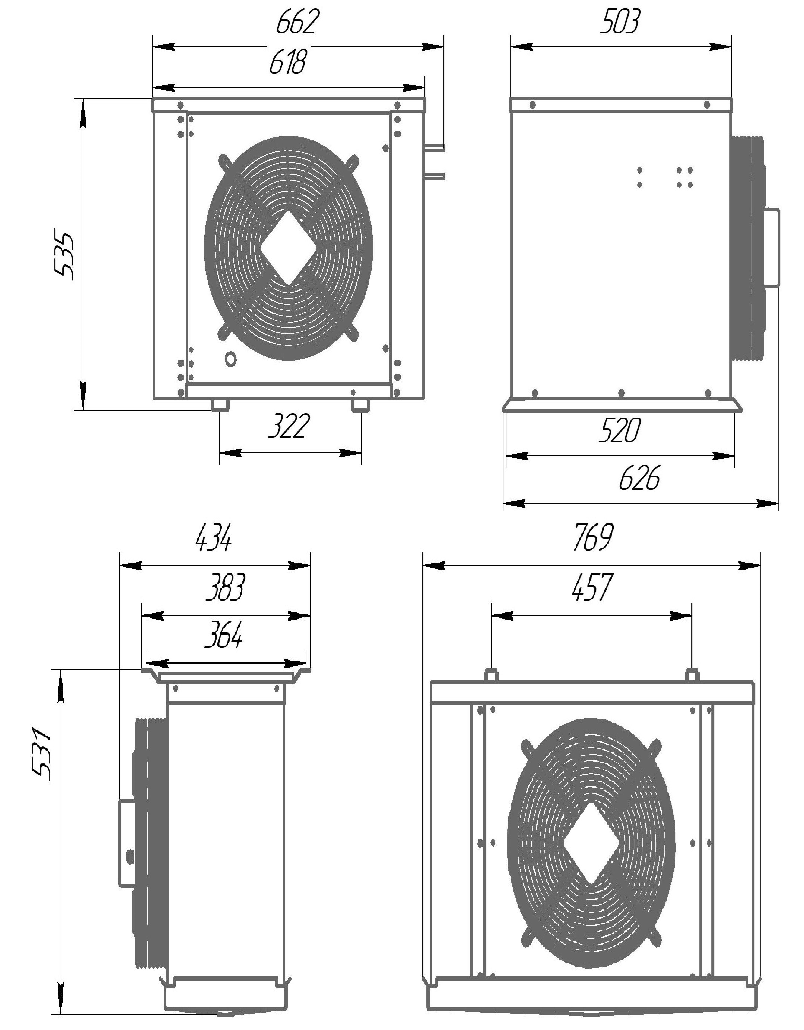 - диаметр крыльчатки: конденсатор: 350 мм, воздухоохладитель: 350 мм;